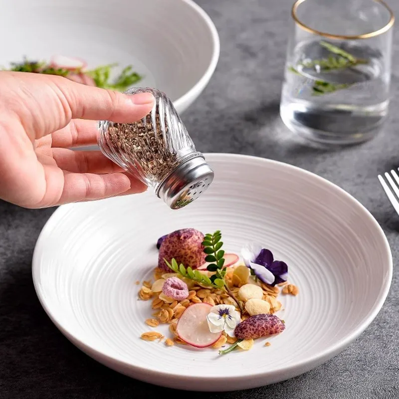 Simple Straw Hat Style Home Use Western Food Plate Pasta Salad Plate Hotel Tableware Plate High-end Ceramic Solid Color Creative Deep Plate