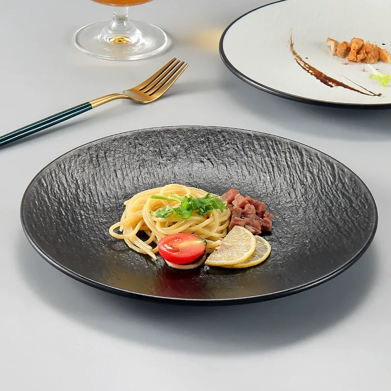 Round Plate Porcelain-like Tableware Western Food Round Plate Plastic Steak Dinner Plate Pasta Hotel Restaurant Plate