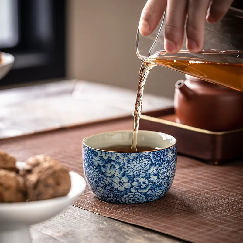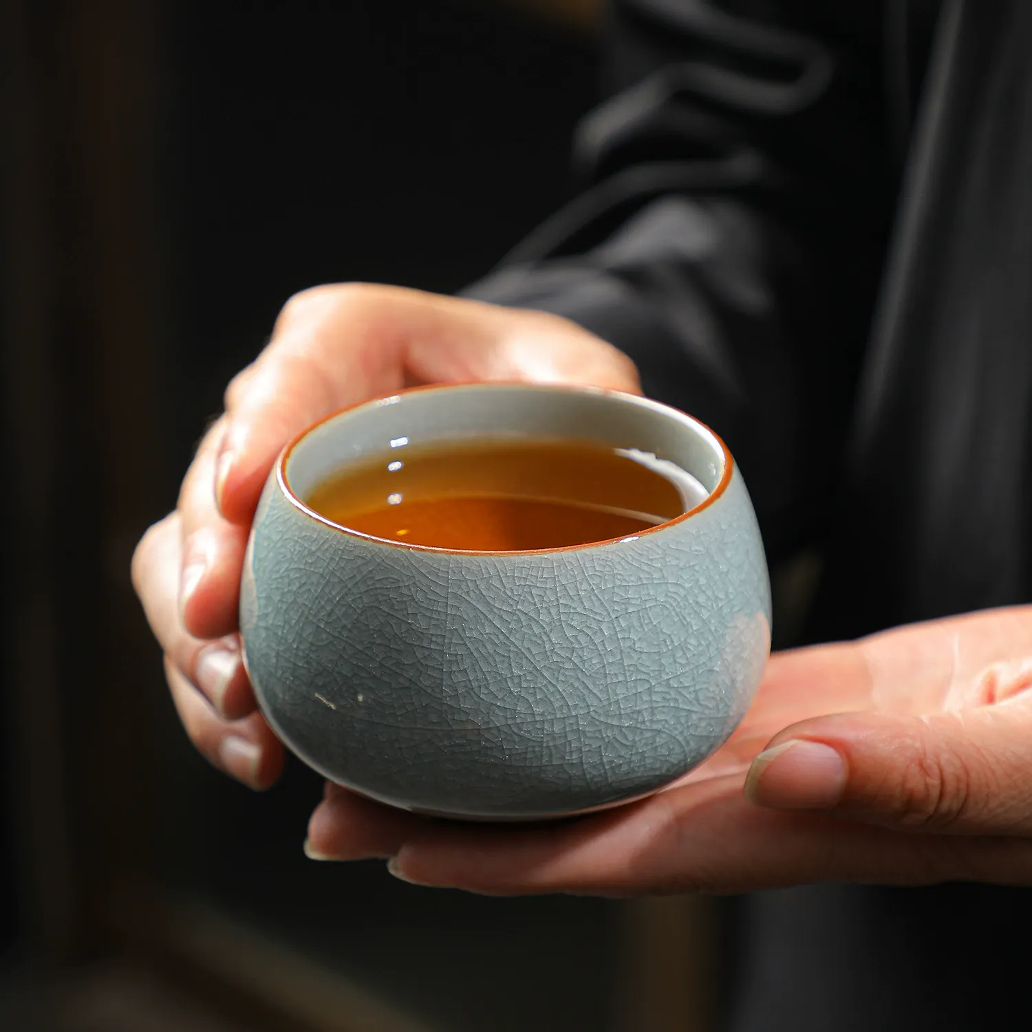 Ru Kiln Ice Flower Glaze Zen Cup Cracked Surface Gold Line Cultivatable Tea Cup Tea Tasting Cup Home Use Kung Fu Tea Cup Gift Cup